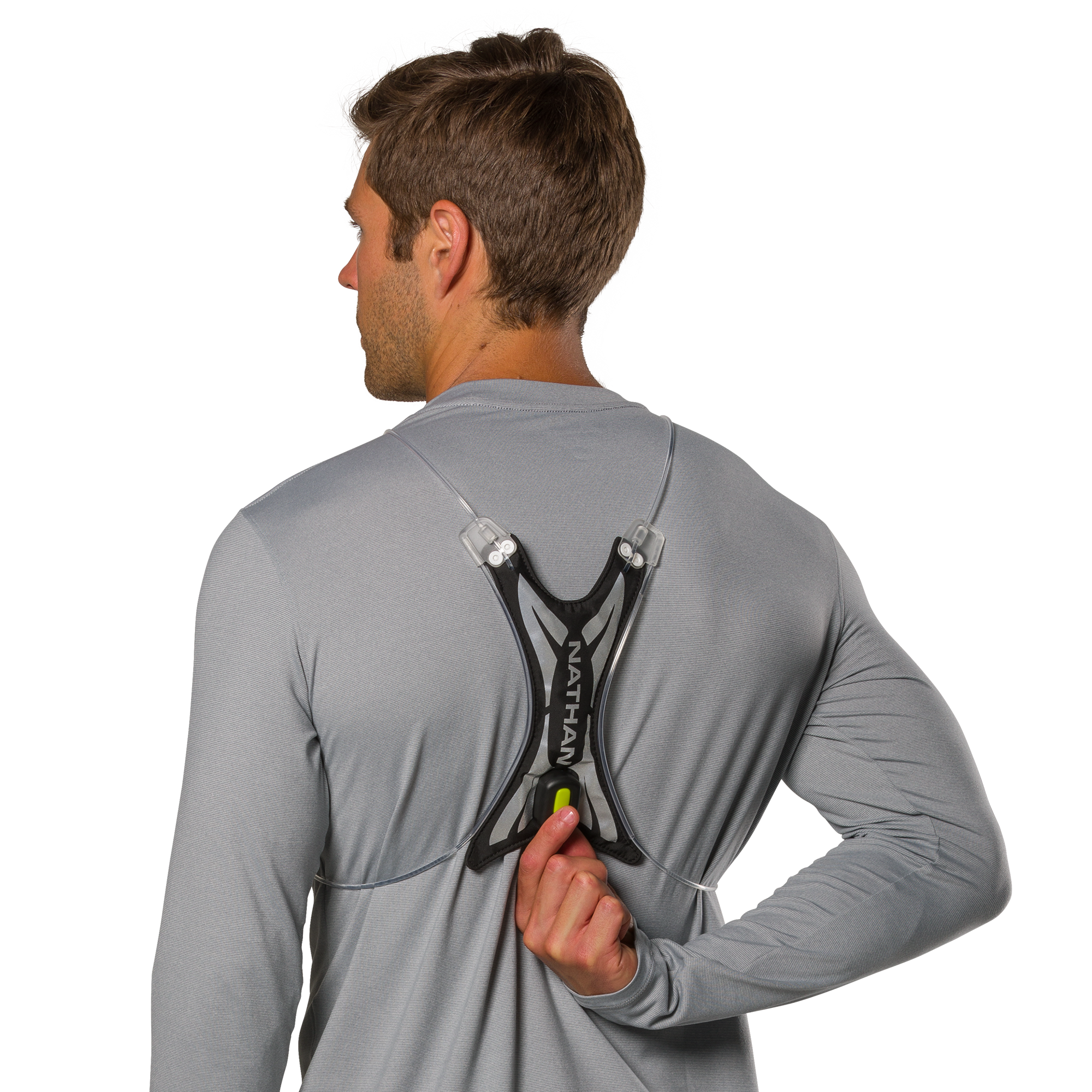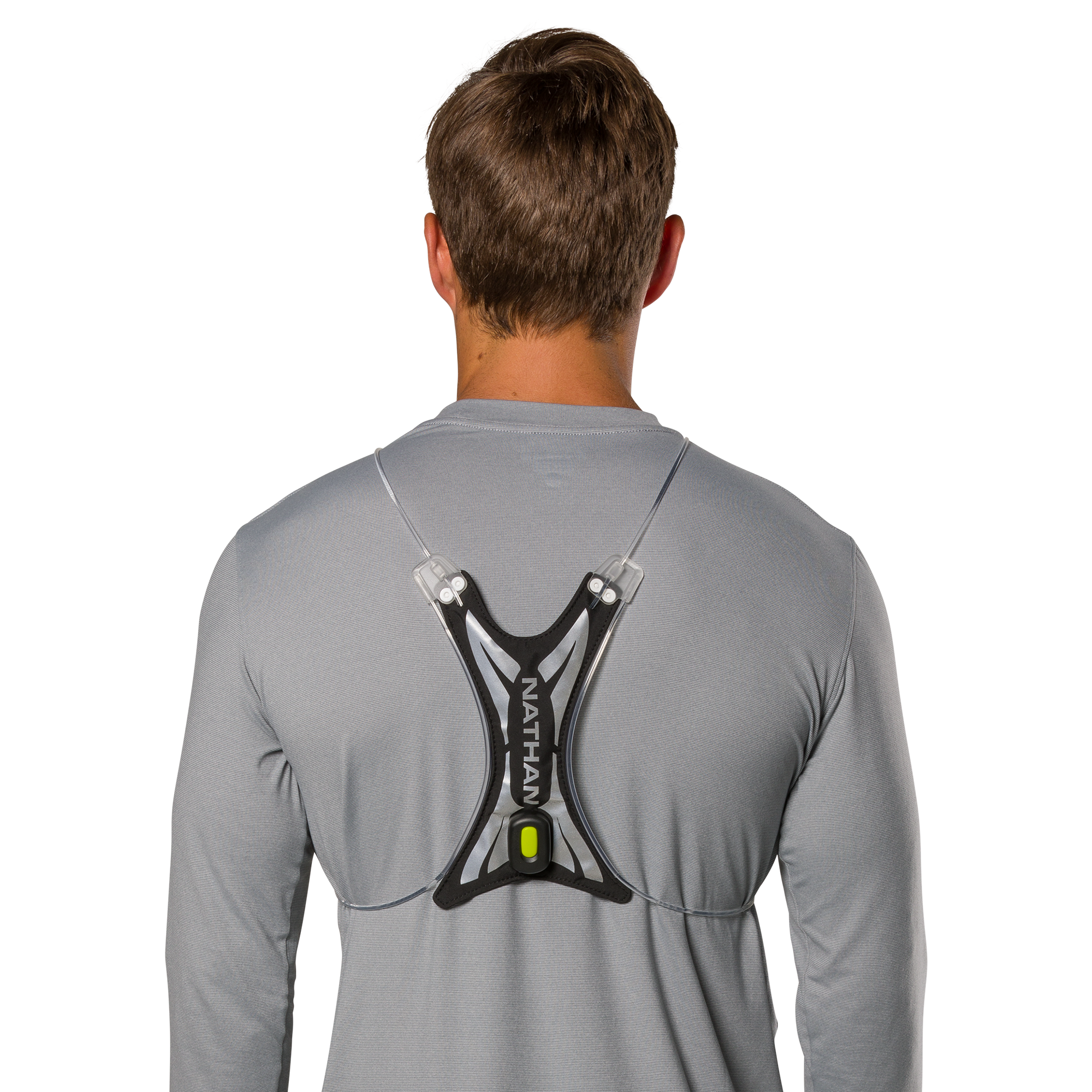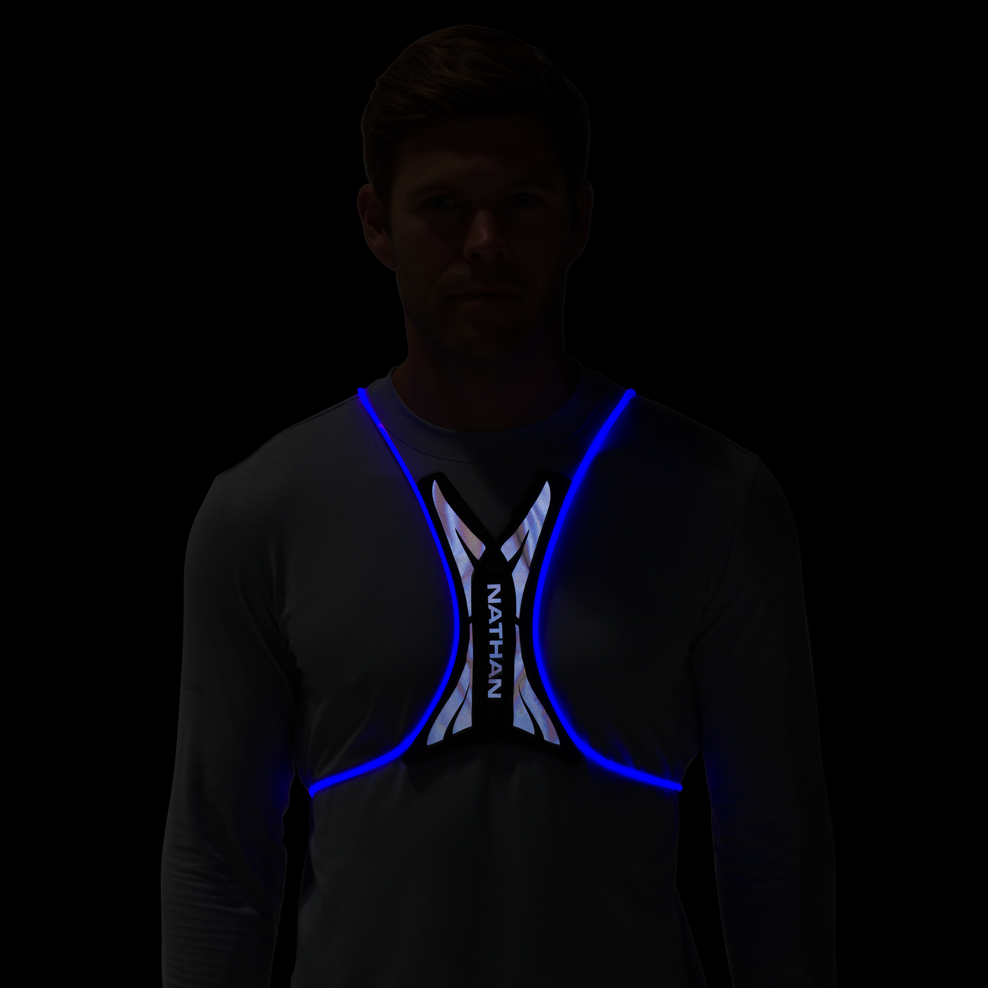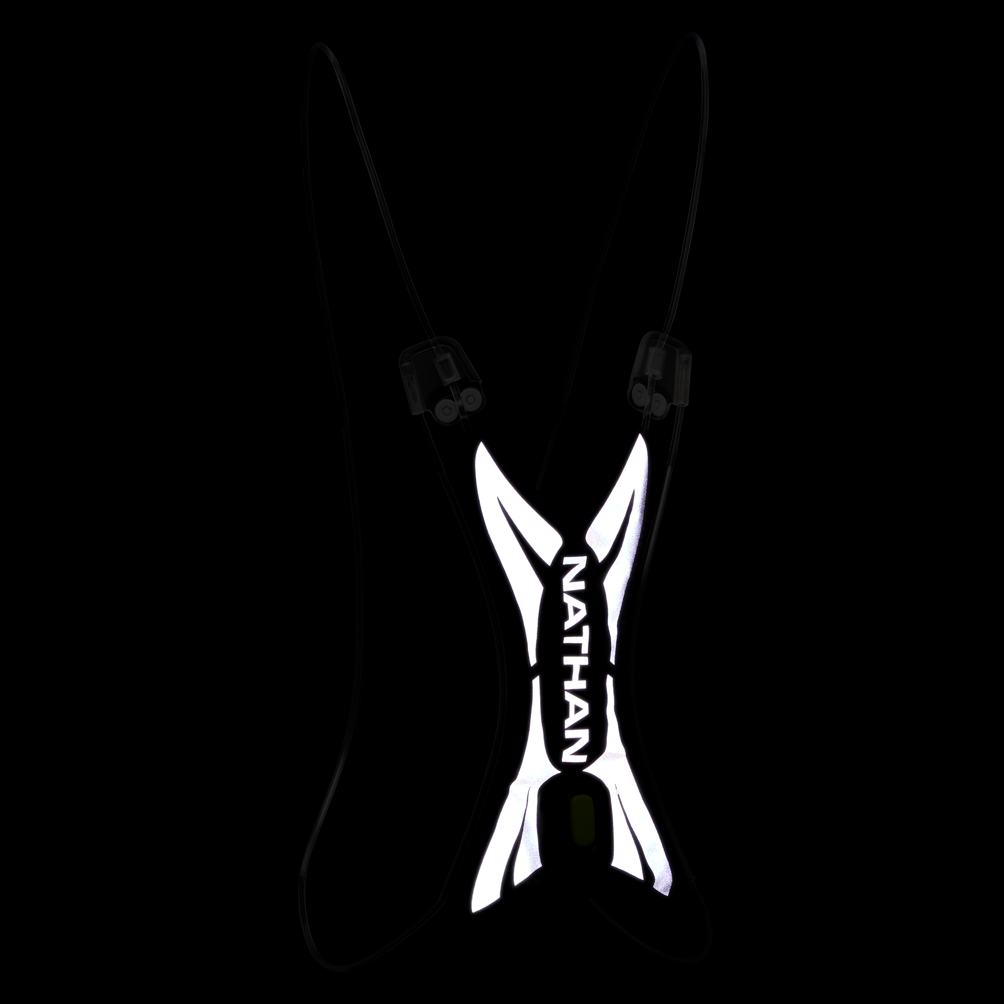 The Nathan Hypernight Laser Light Vest features a 10 lumen fiber optic light tube with eight different settings: red, green, blue, teal, yellow, white, pink, or multi-color strobe. It provides 360º visibility from 1200 yards away.