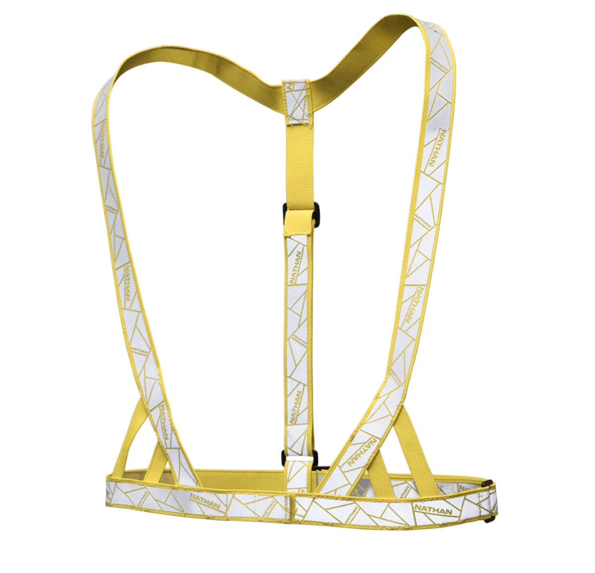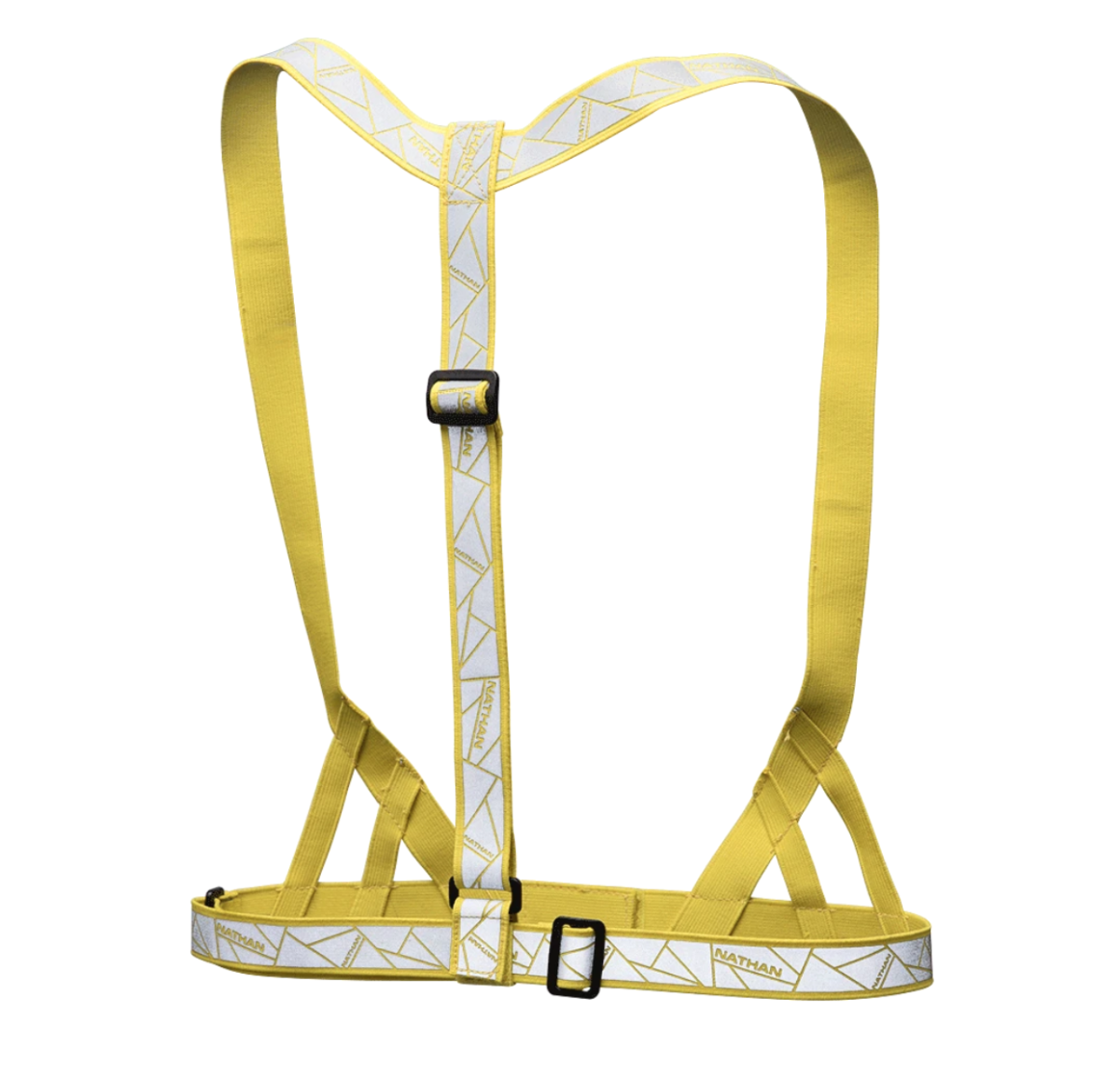 Our minimalist, run-comfortable, easy-to-fit, and super-reflective… reflective vest literally has Visibility designed into it, as the front straps provide a bright V-shaped reflection when cars’ headlights hit them.